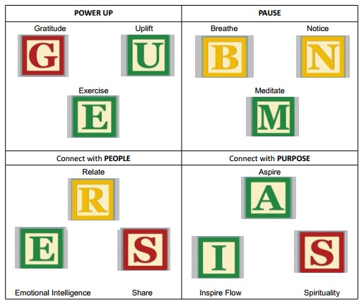 The building blocks divide into four Ps: Power Up, Pause, People, and Purpose.