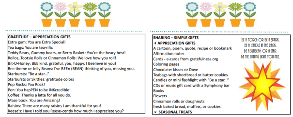 The following ideas for simple, inexpensive gifts are easy to share to relate with and uplift others.