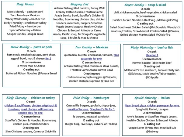 […] Plan B: Use daily themes – see Eating For One […]