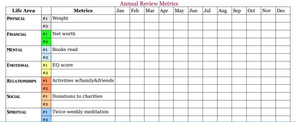 A shiny, newly updated post on how to do An Annual Review includes a free printable Annual Planner for charting results of regular reviews, and an Annual Metrics Chart to help keep you on track.